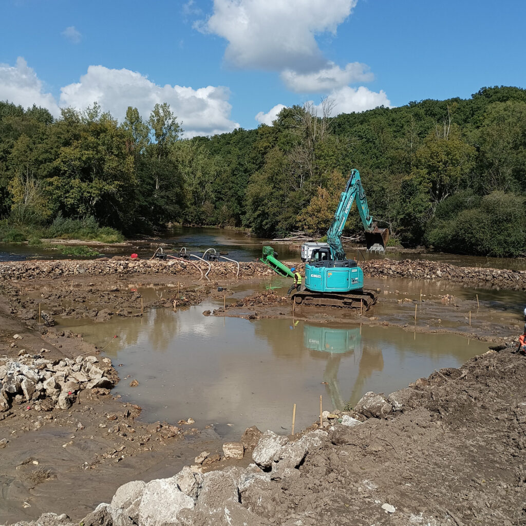Création du batardeau amont et aval permettant la mise hors d’eau du chantier